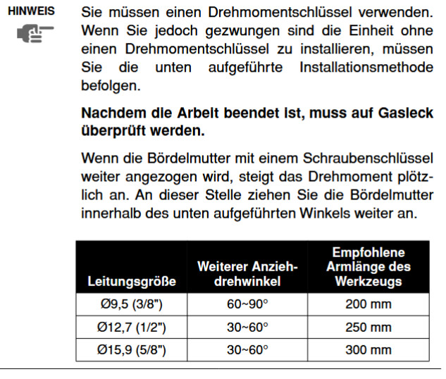Prima, dass passt ziemlich gut zu meinen Werten, die ich experimentell ermittelt habe. Lediglich beim dünnen 1/4 Zoll Rohr spürt man diesen Drehmomentanstieg nicht gut, da liegt alles sehr nahe beieinander von fest bis zum Verformungspunkt des Kupfers.