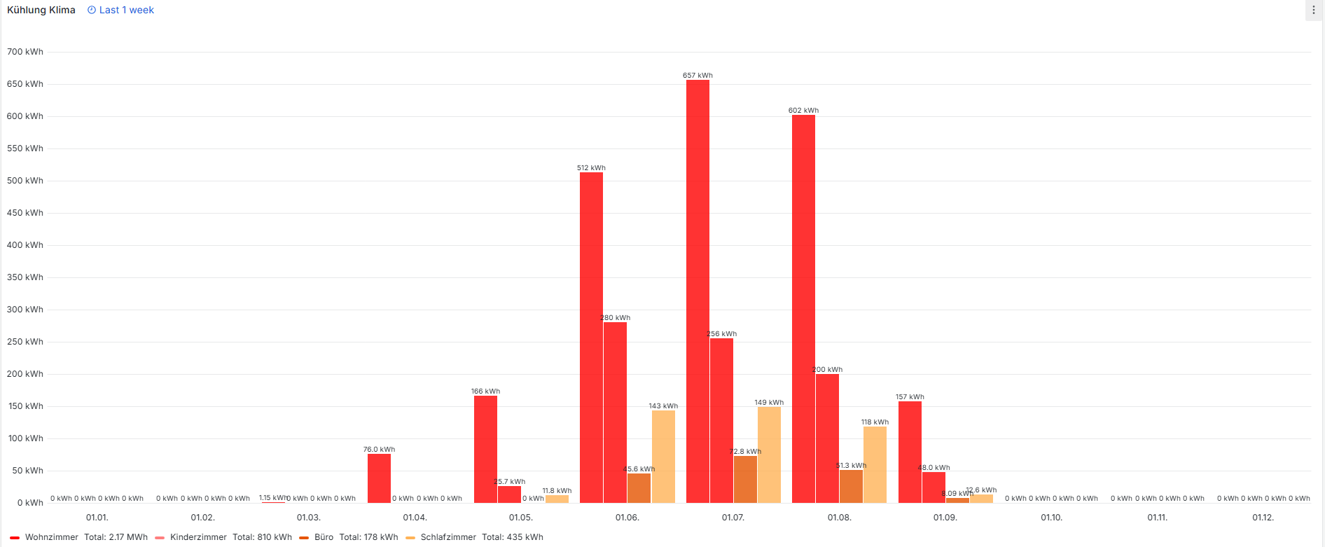 Der Kühlbetrieb wurde zu 100% aus der PV-Anlage bestritten, so dass ich den Stromverbrauch hier nicht weiter analysiere.