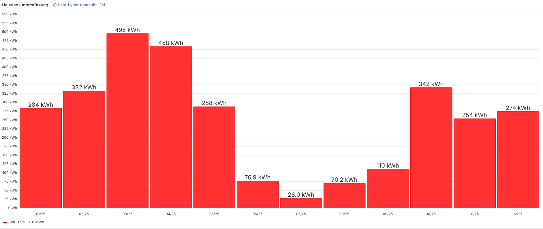 Die Differenz zu 2024 liegt damit bei einem Minderverbrauch von 2.460 kWh Wärme, für die 707 kWh Strom aufgebracht wurden. Das entspricht einem SCOP von 3,48.
