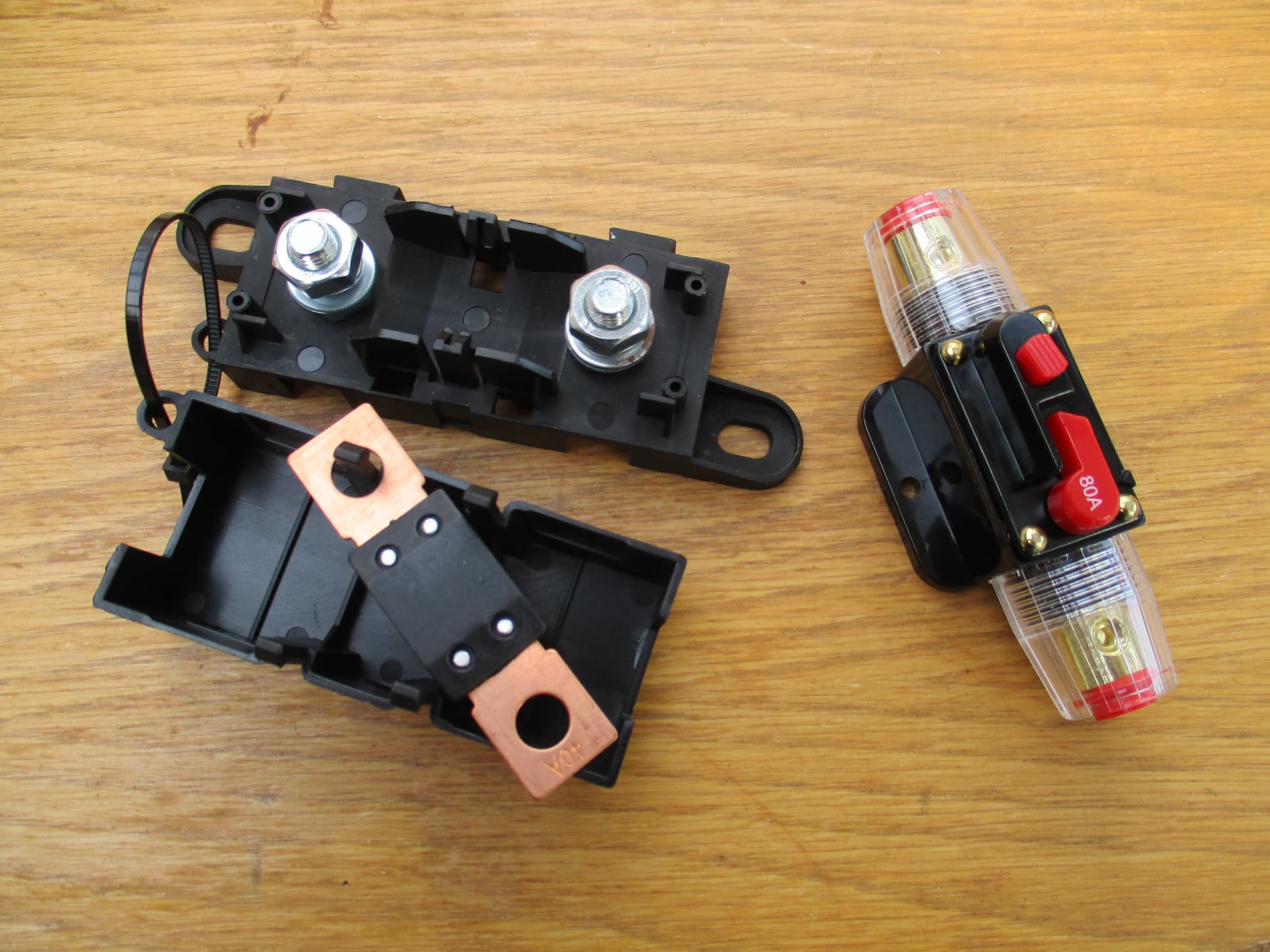 an dem dicken Holzbrett verschraubt, und hier habe ich noch zwei verschiedene Sicherungen (von jedem zwei vorhanden), zur Auswahl, welche würde sich besser eignen?