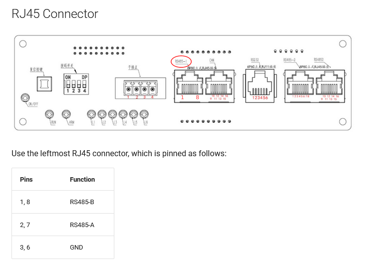 Nimmst Pin 1 und Pin2 vom RJ45. Prüfst das UART Protokoll = 0. Legst das auf den RS485 Wandler (A+ und B-). Dessen Pins wiederum auf die Pins aus der Sissy-Yaml am ESP und kompilierst das Ding.