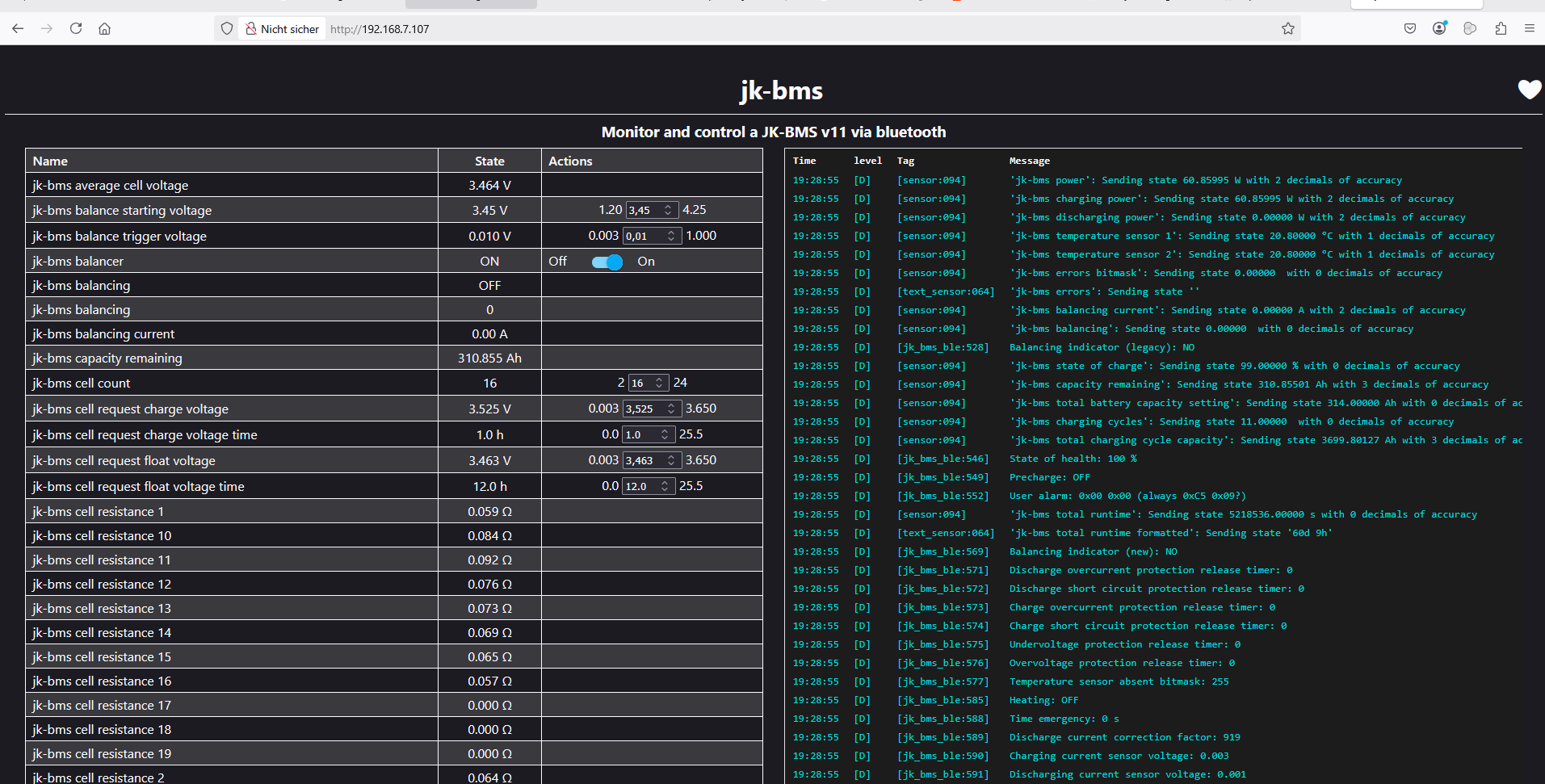 weiter die Frage, was ich alles im JK-BMS einstellen muss. Im Augenblick habe ich die JK-App auf dem Smartphone ,mit der ich über Bluetooth auf das BMS zugreifen kann.