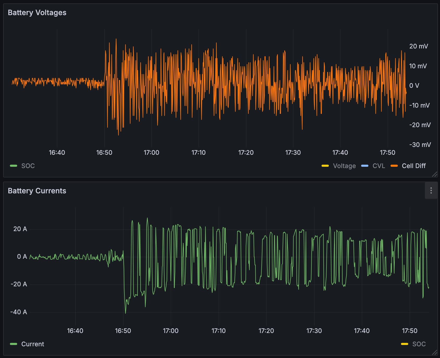 Du zeigst hier, wenn ich es richtig verstehe Ströme die ein Delta >40A in kurzer Zeit hin und her springen und das zwischen Lade und Entladenzustand hinweg.