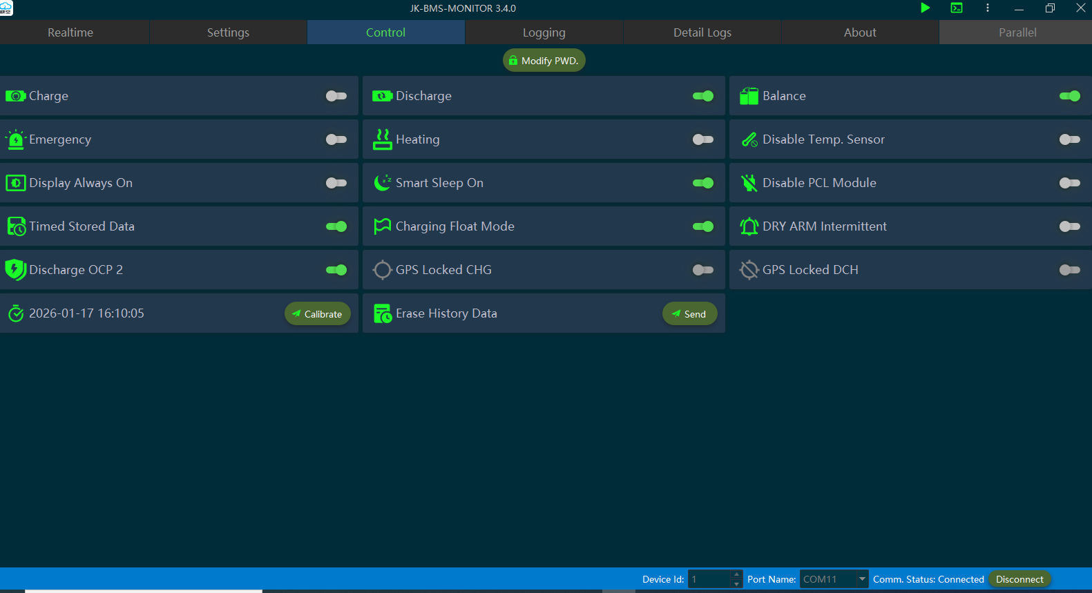 Das Verhalten ist unabhängig von der FW des MP2 und der JKBMS, ergibt sich somit mit älteren Versionen wie auch den heute, neusten eingespielten in beiden Komponenten.