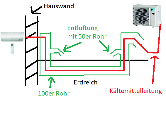 Der Thread ist nun zwar schon ganz schön alt, aber darf man fragen wie das nun realisiert wurde? Bei mir steht eine ähnliche Installation an, die Kältemittelleitungen von 3 Klimas sollen ein paar Meter in Richtung Garten gezogen werden. Am besten in einem Rohr unterhalb der Grasnarbe. Also einfach ein KG Rohr einbuddeln und die Leitungen durchschieben? Muss sonst irgendwas beachtet werden? Ein-und Ausgang mit Schaum verschließen oder gibt es da sinnvollere Alternativen?