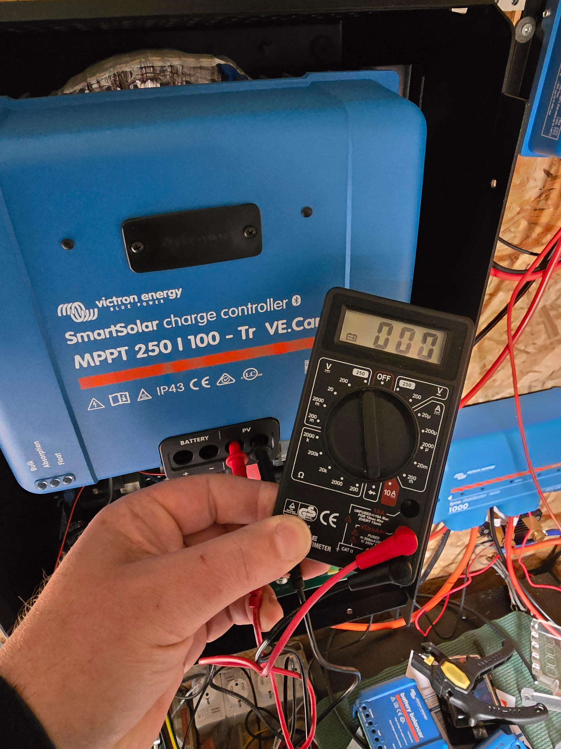 ich habe auf den MPPT ja garkein zugriff mehr, er wird ja garnicht mehr in der Geräteliste angezeigt, nur auf dem Dashboard sieht man ihn noch unten in der Ecke SmartMPPT - - - aber irgendwelche Lebenszeichen sind sonst fehlanzeige. Ich habe den PV durchgemessen, Multimeter sagt bei durchgansprüfung 0.00 an, also ich denke da sitzt ein fetter Kurzschluss intern, ich habe den MPPT ausgebaut, aber ohne startet der EasySolar garnicht mehr. Hab den Support mal angeschrieben, mal abwarten was die sagen.