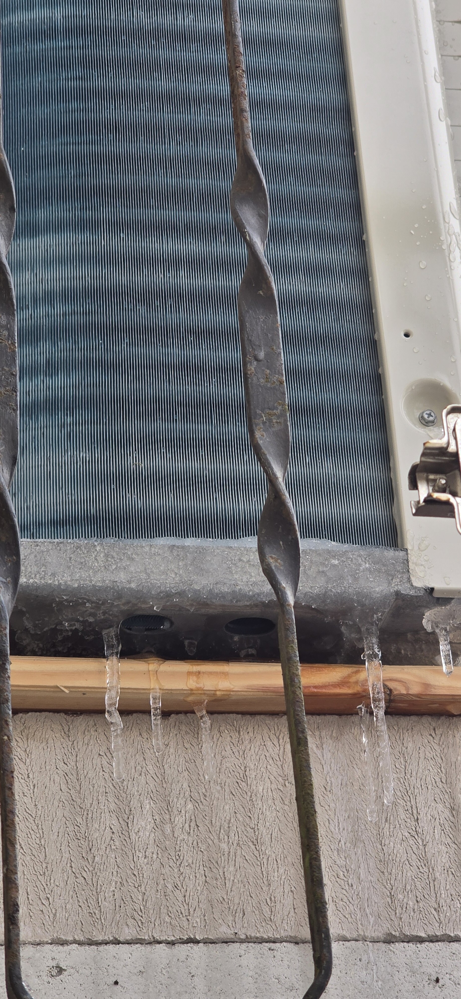 Meine DAIKIN 3MXM Perfera hat ohne Wannenheizung bereits aktuell (0°C) leichte Eisbildung. Wenn man genau schaut sieht man wie das Eis innenliegend am Rand der Wanne hochwächst.