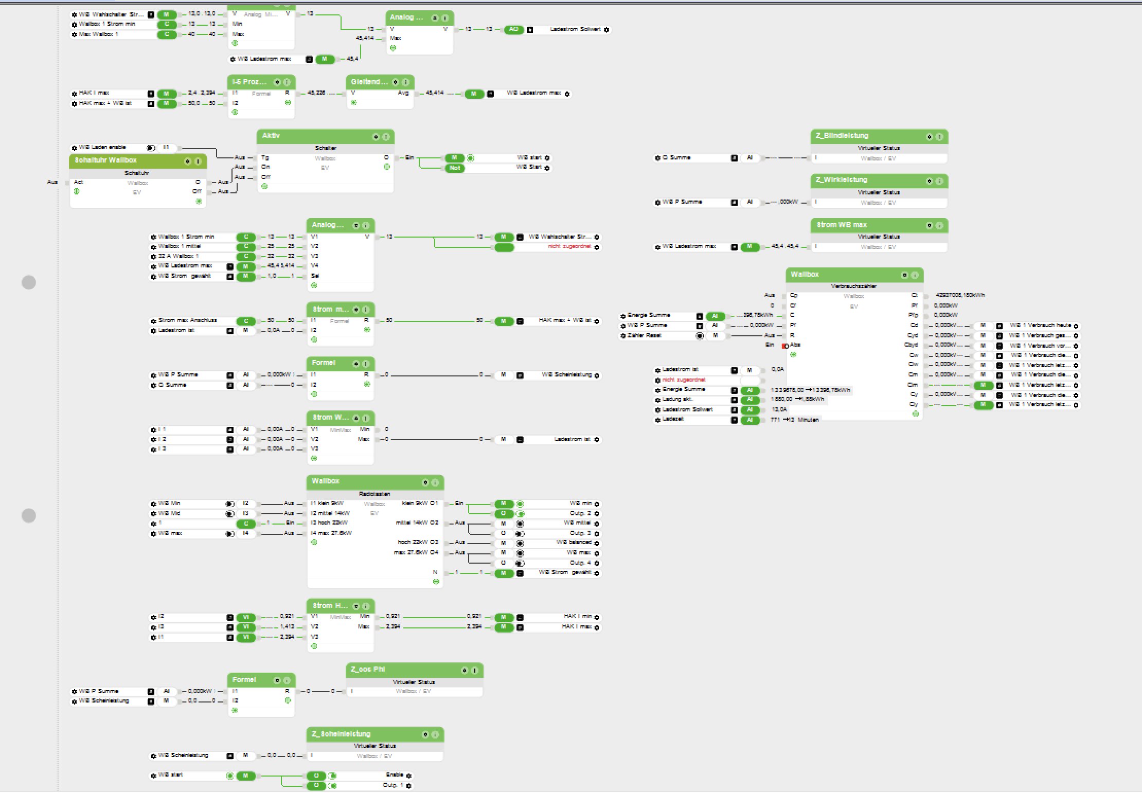 Blöd ist die Integration in die Wallbox Bausteine der Loxone, habe die Regelung momentan selbst programmiert. Würde aber gerne auf die Energie und Wallbox Bausteine der Loxone zurückgreifen, dann wäre Visualisierung etc. schöner und einfacher.