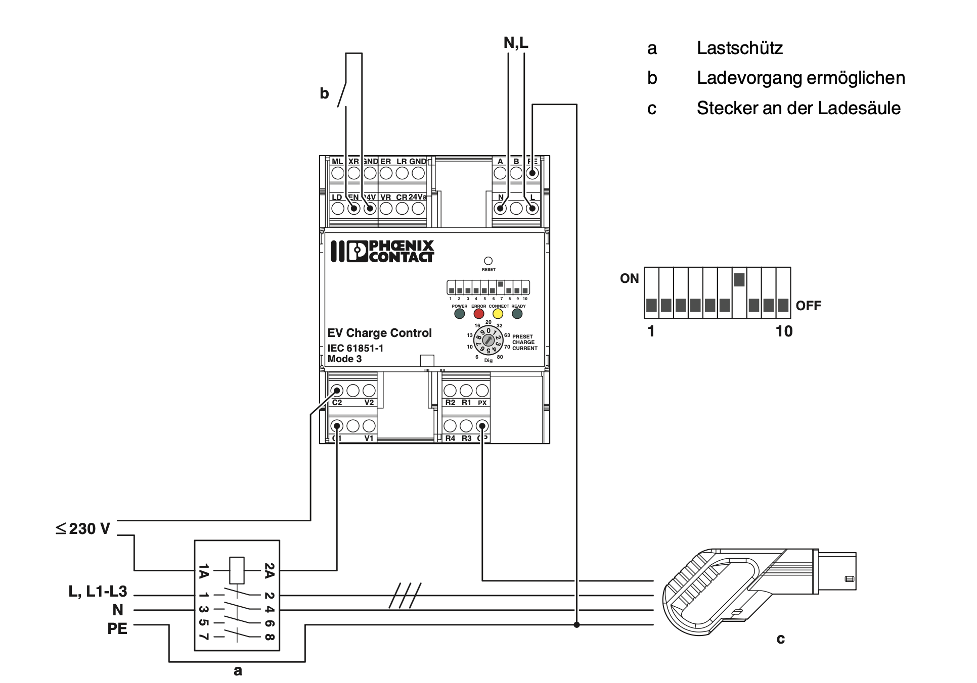 ja, den kann man am Controller auf den maximalen Ladestrom begrenzen (Drehschalter) die Loxone sendet den aktuellen Wert per Modbus an den Controller, und dieser passt den CP an, das Auto ändert den Ladestrom auf den aktuellen Wert vom CP.