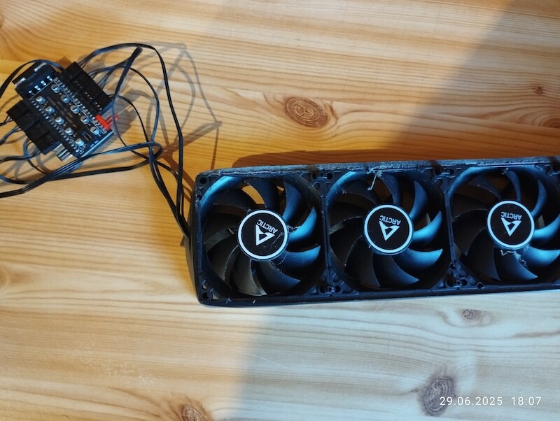 Ich betreibe was ähnliches mit 3 x 120 mm Flüster PC Lüftern fix an 12 V.