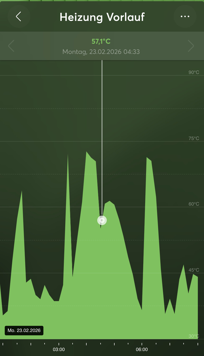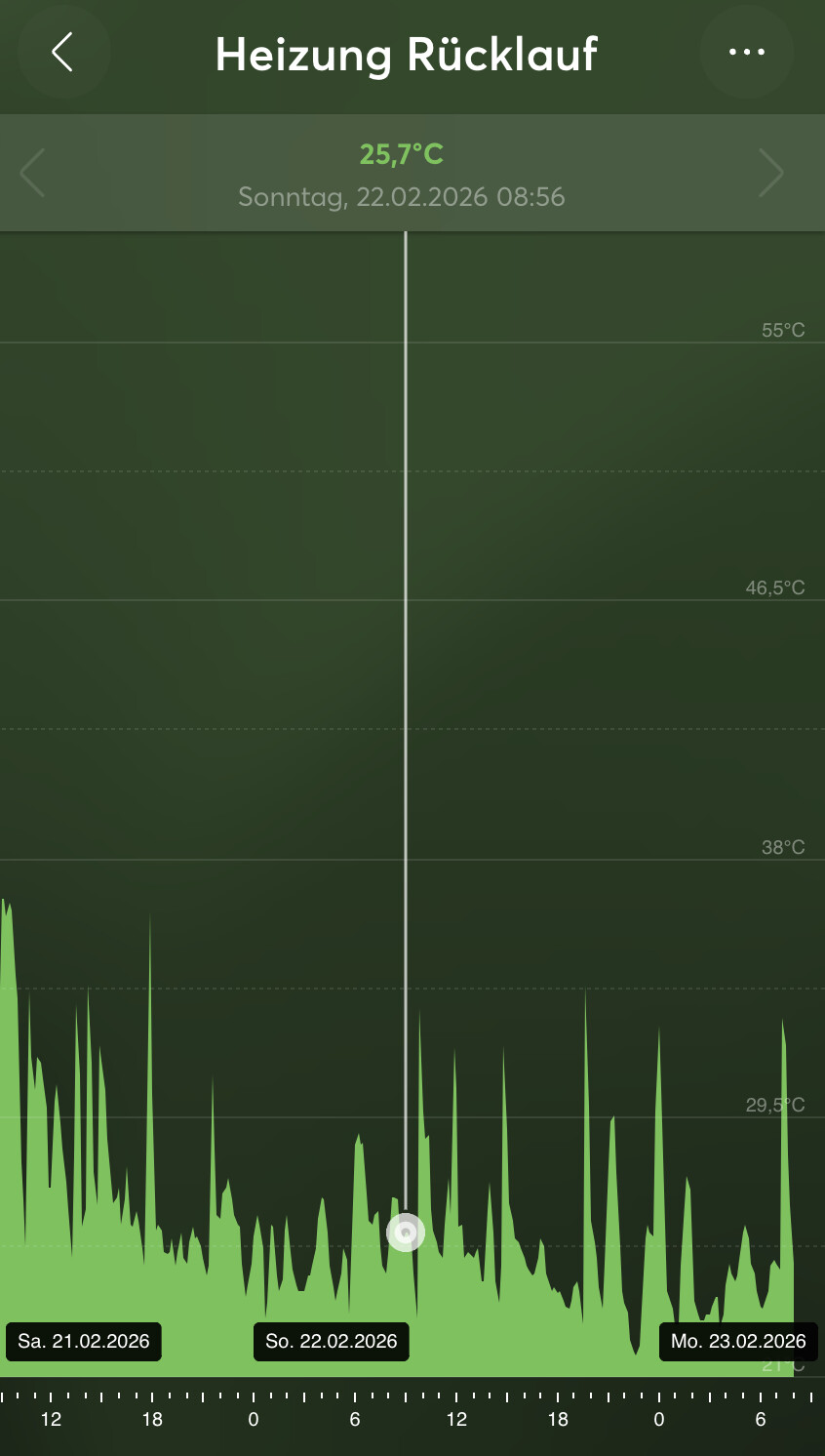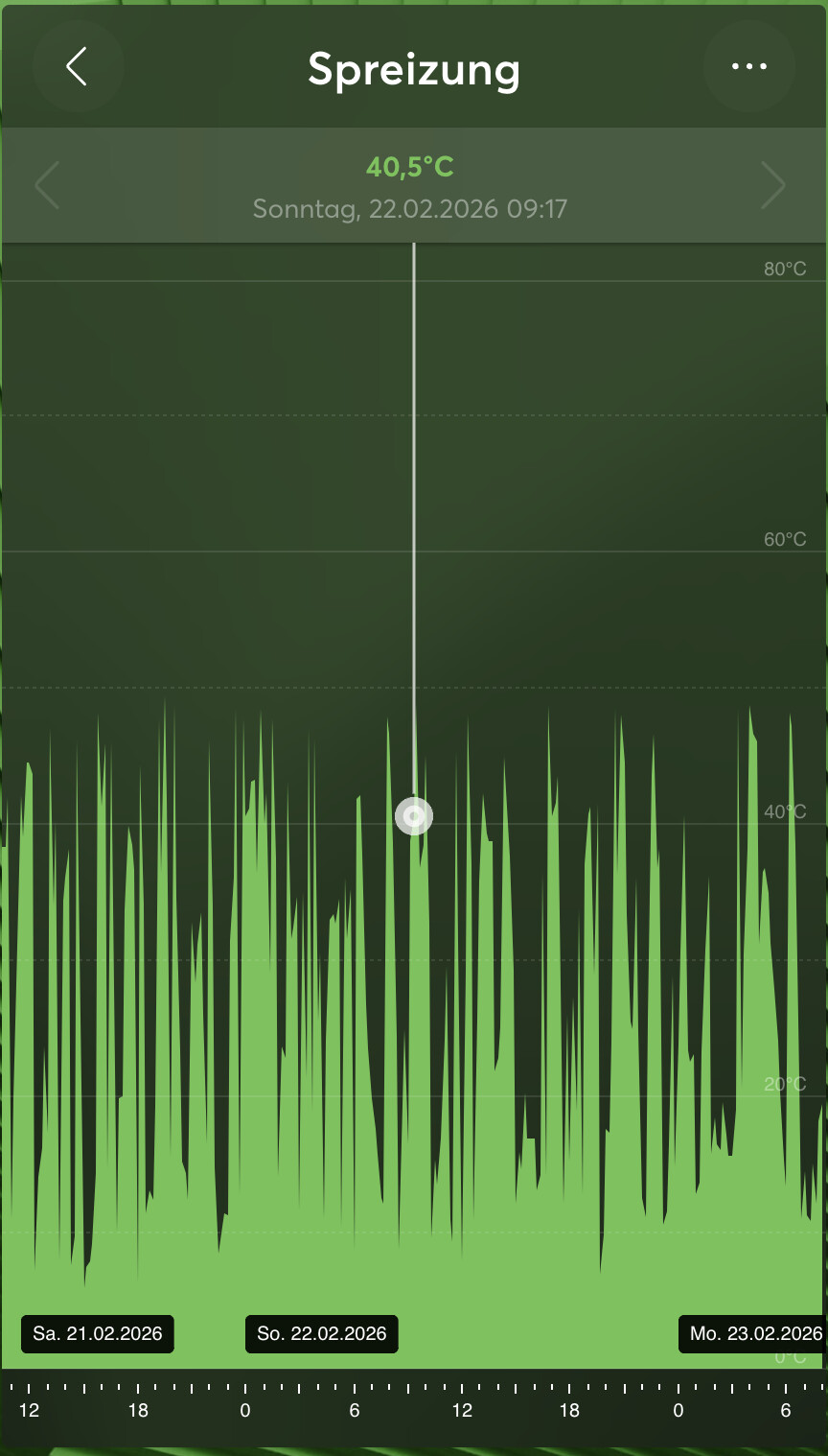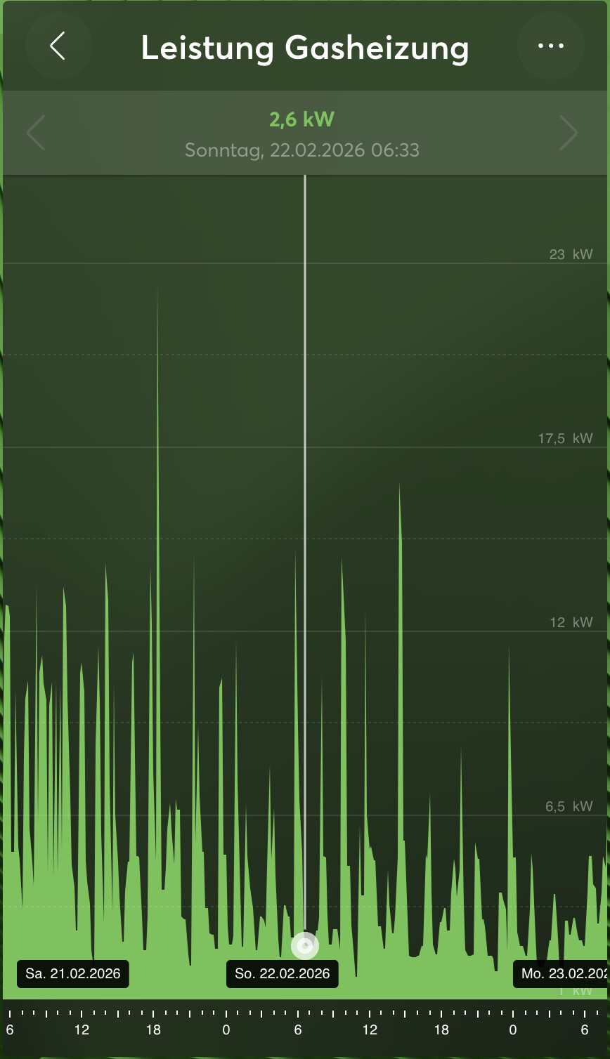 Ich gebe zu bedenken, dass laut Temperaturverlauf im Eingangspost die Durchschnittstemperatur für den 11.1. bei grob geschätzten -3 bis -5°C liegt, die morgendliche Spitze dürfte das Haus wegpuffern. Laut Gasverbrauchsgrafik wird die Therme ihre Leistung ab ca. 6:30 nur für wenige Stunden los und später schreibst Du von stark schwankender VL-Temp. Ich würde darauf tippen, dass entweder die Pumpe spinnt oder der Heizkreis dringend abgeglichen werden sollte. Bei der Regelmäßigkeit würde ich auf letzteres tippen, das Schwingen könnte auch von auf/zu von Heizkörperreglern kommen - am So Morgen war der Kreis ausnahmsweise dauerhaft offen. Oder die Therme taktet häufig - für eine nicht-modulierende Therme(?) sind wechselnde Leistungen zwischen 14 und 8 kW Gasverbrauch etwas irritierend.