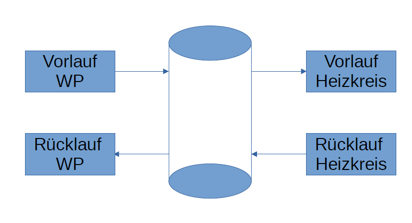 Jetzt sitzt der Puffer im Vor- und Rücklauf und die WP braucht am Anfang 2-3K mehr um den Puffer zu heizen, bis es bei den Heizkreisen ankommt, das kostet etwas Effizienz.