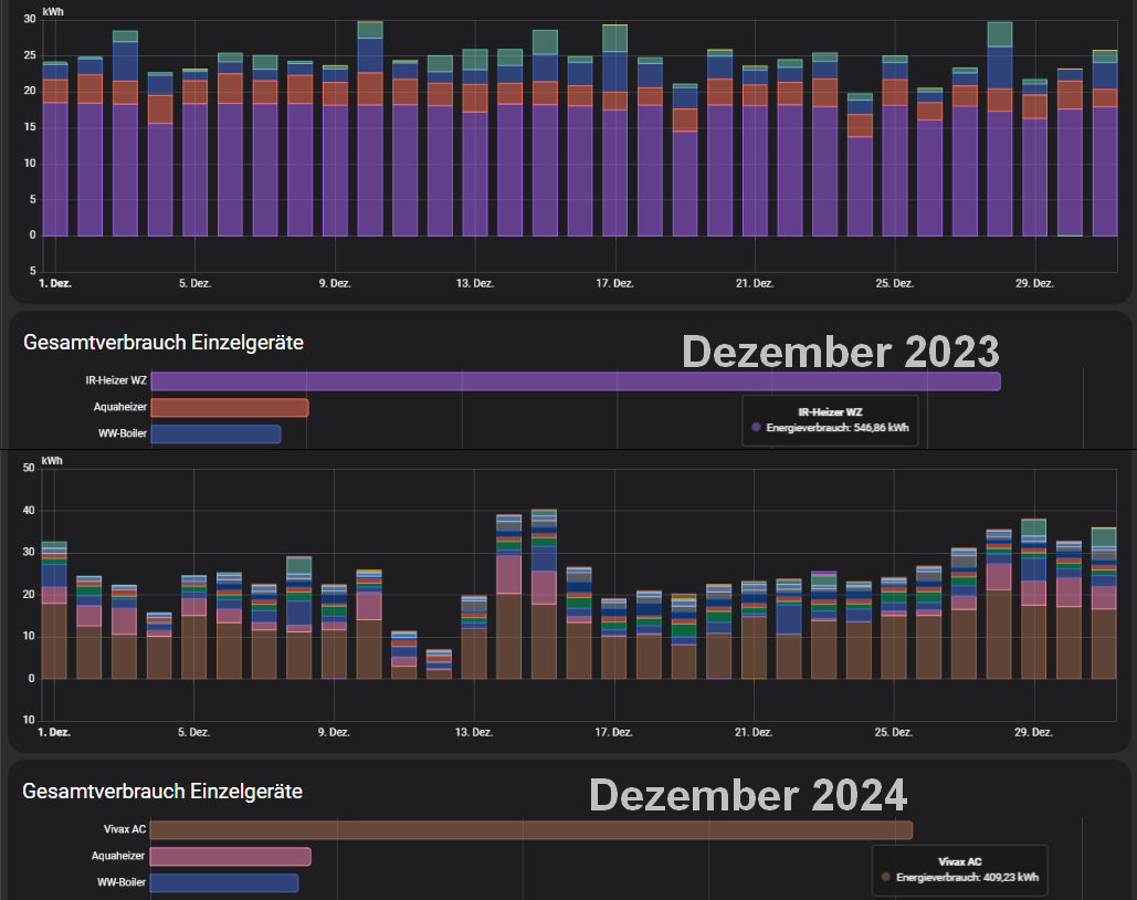 Das Ergebnis ist eindeutig. Heizfläche mehr als verdoppelt, Stromverbrauch gesunken, Gas auf Null und Wohnkomfort gestiegen.