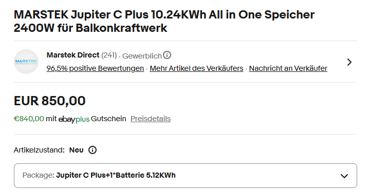Zur Ursprungsfrage … 96,5% bei marstek Direct ist nicht gut auf ebay …