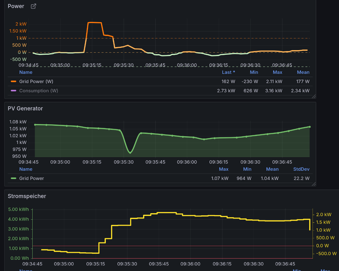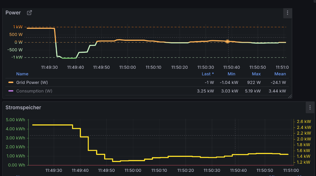 Und arbeite nur mit der max. 800 Watt Eigenverbrauchs Einstellung. Ich könnte mir vorstellen das ist schonender für die Zellen und den Anschluss wenn ohne separate Leitung sowieso.