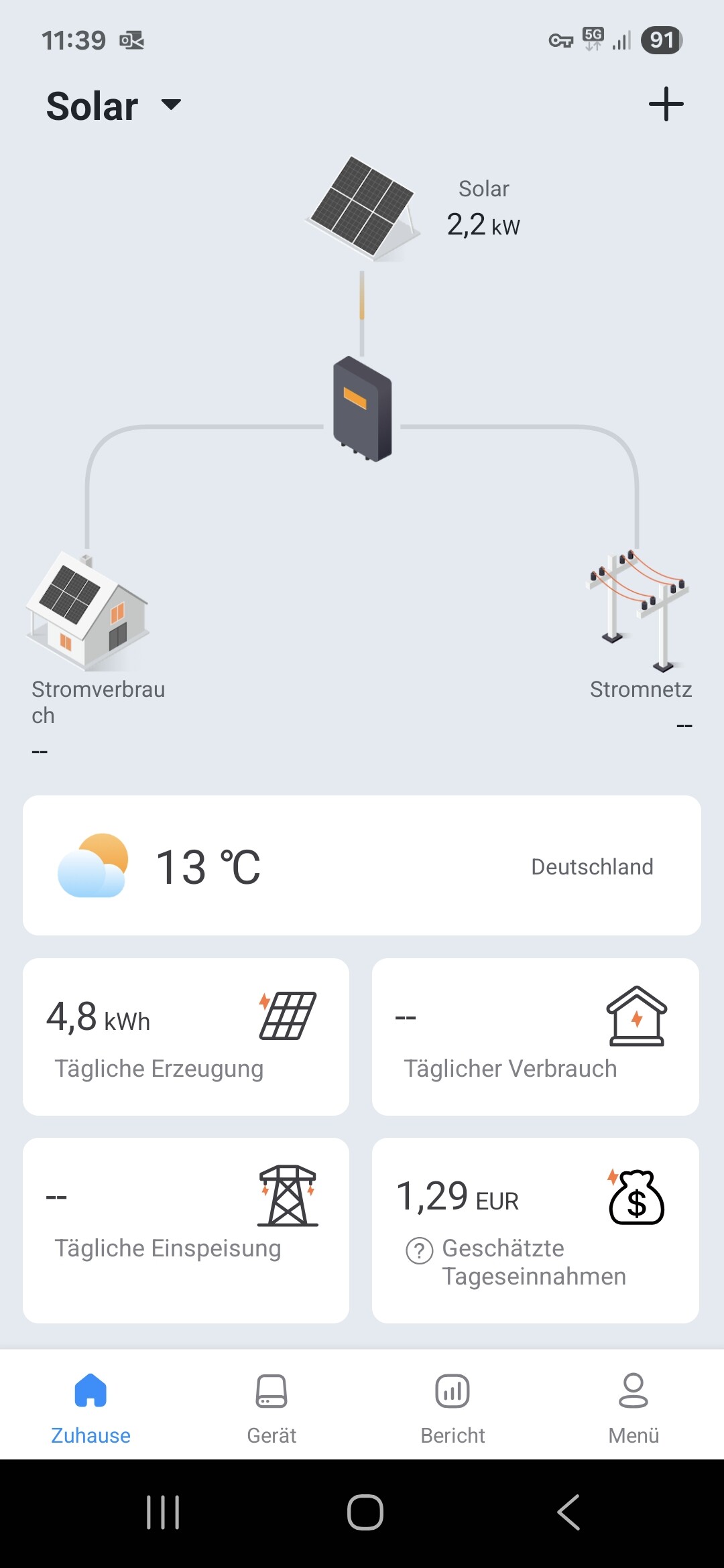 Wie man auf dem Bildl sehen kann, Strom wird produziert, aber der Speicher wird nicht aufgeladen. Leider immer noch nur ein Bild möglich.