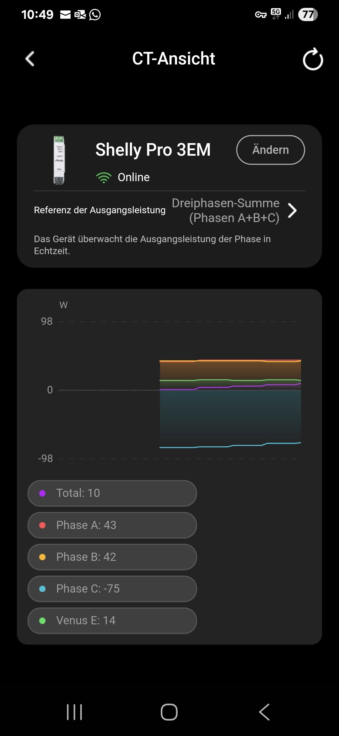 Hallo, ich habe gestern den Venus E 5,12 kWh und Shelly Pro 3 EM angeschlossen.