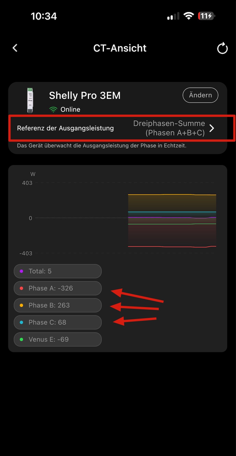 Dort sollten alle drei Phasen eingestellt sein und auch unten die Werte vom Shelly stehen. Wenn oben z.B. nur eine Phase eingestellt ist wo nichts eingespeist wird, lädt das Ding auch nicht.