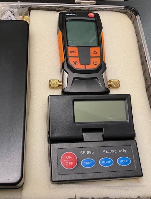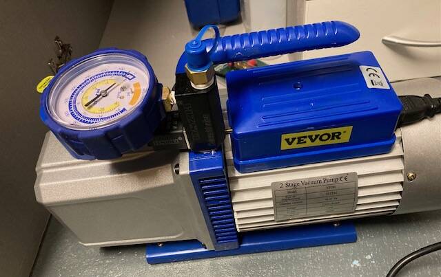 ich verwende seit 2020 Bördelgerät und Monteurhilfe von DSZH China, die Vakuumpumpe ist von Vevor 2 Stufig mit nachgerüstetem Manometer und Magnetventil, Vakuumöl von Kajo Deutschland, eine Paketwage fürs Kältemittel ein Testo552 Vakuummeter.