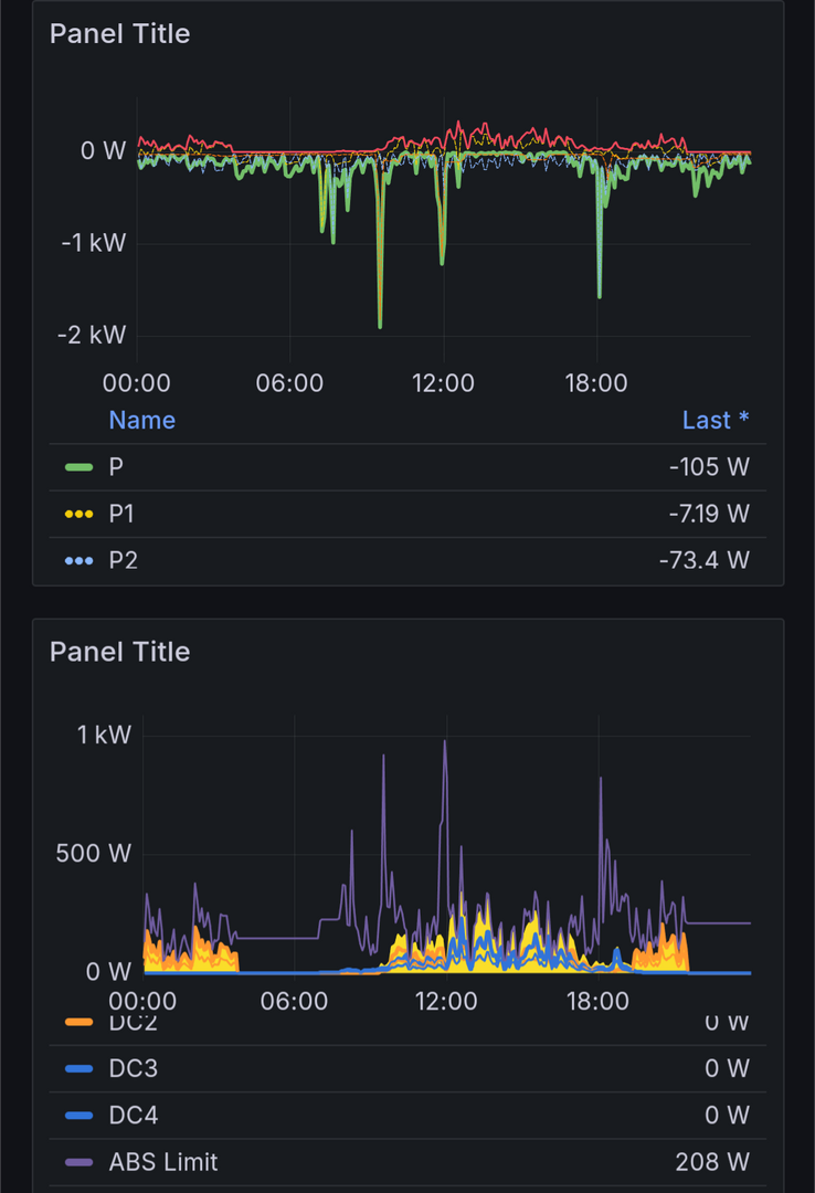 Während der Akku Ladung oder im Bypass sollte das WR Limit auf max. zurückgestellt gestellt sein (600 W), damit die Ertragsausbeute nicht negativ beeinflusst wird durch die MPP Tracker des WR. Eine WR Regelung tagsüber kann zwar gemacht werden, macht aber keinen Sinn weil dadurch der Ertrag und somit auch die mögliche Aufladung reduziert werden kann. Dann lieber produzierten Strom verschenken als weniger produzieren durch die Reduzierung...