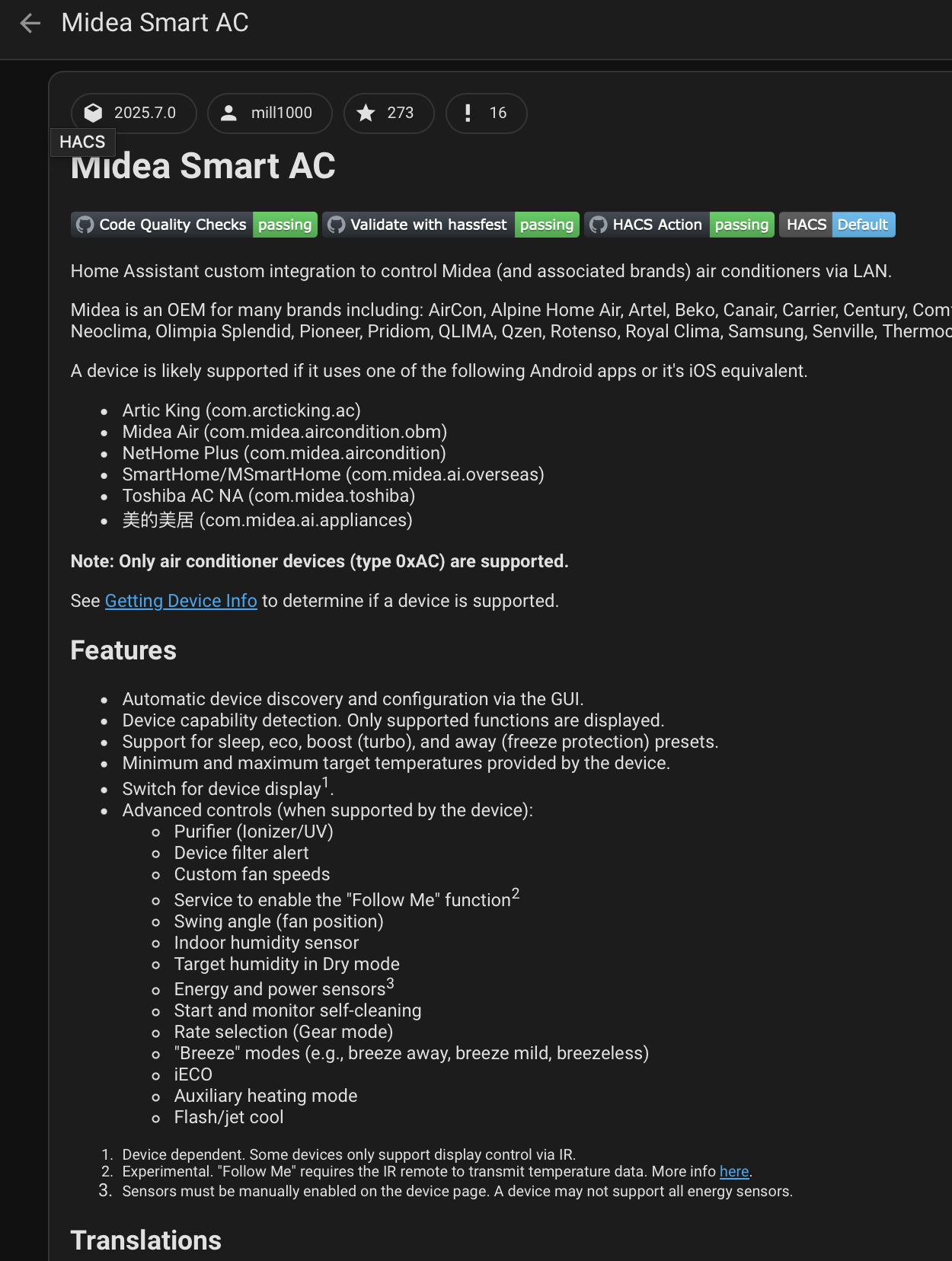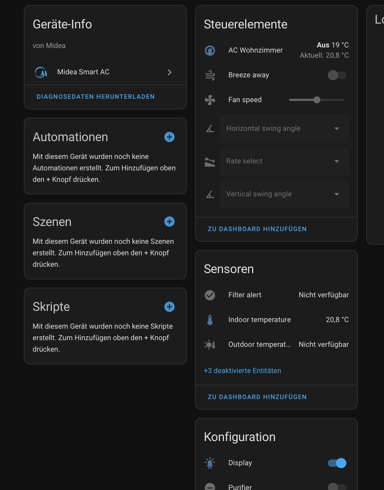 Ich hatte sogar noch einen ESPhome stick für die Midea gekauft, aber die HACS Integration ist so gut, dass ich es doch nicht umgebaut habe.