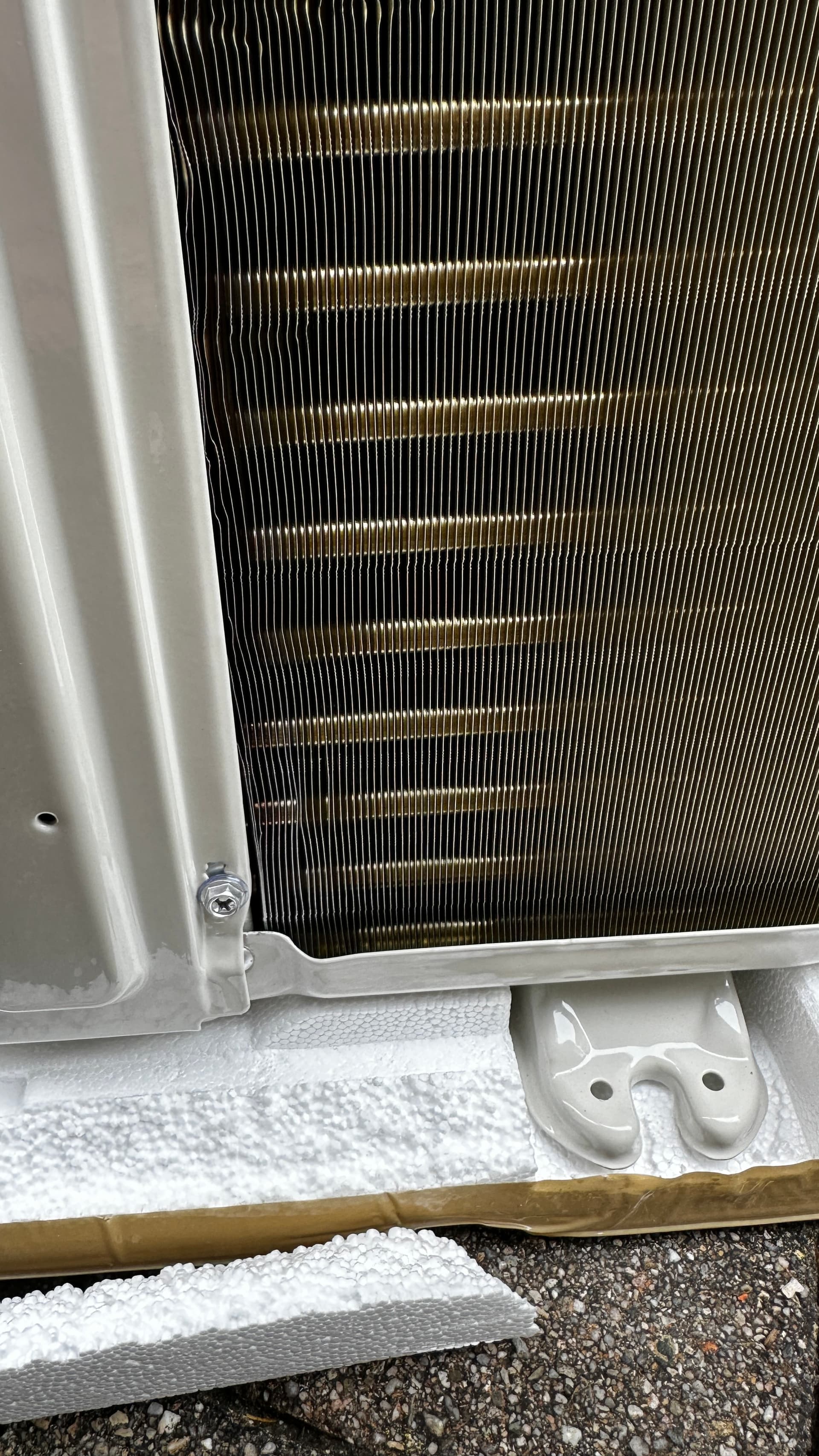 Das mal ein paar Lamellen verbogen sind, ist nicht untypisch. Das passiert teils schon ab Werk. Wie sauber da Midea arbeitet, weiß ich nicht. Das die Wärmetauscher nicht sonderlich geschützt sind, ist normal. Macht man so, weil im Winter der Wärmetauscher frei sein muss, damit es nichts gibt, was zusätzlich vereisen könnte. Manche Hersteller haben ein ganz grobes Gitter, was aber auch nicht wirklich mechanisch schützt und was viele sofort ausbauen, weil es zum mitschwingen neigt und hässliche Geräusche macht.