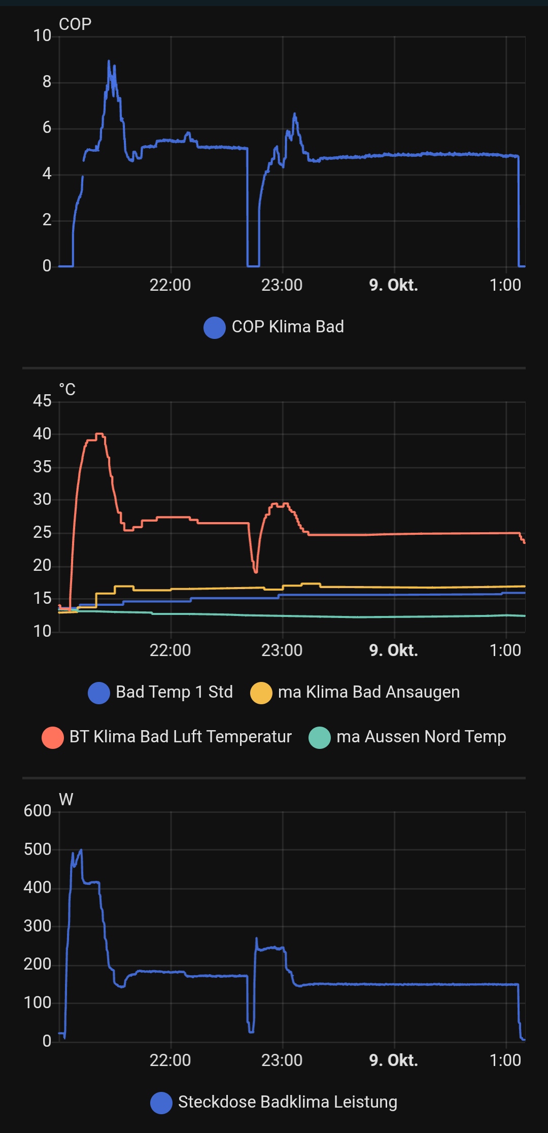 Hallo Lothar, im Winter läuft diese Anlage, egal bei welcher Aussentemperatur bis ca. 0-4° genauso wie jetzt bei den 16°. Den Monat März hab ich durchgehend mit Home Assistant Sekunden genau getrackt. Jeder Tag steht zur Verfügung, wenn gewünscht.