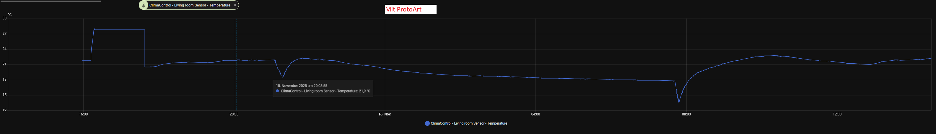 Noch ein paar Worte zum ProtoArt Teil, keine Ahnung ob das schon Thema war. Ich habe bei mir das Wifi Modul jetzt erstmal abgeklemmt, auch wenn es sich paralell benutzen lassen würde. Das Wifi Modul zeigt weiterhin die Temp. vom internen Temp. Sensor an, oder ich war zu doof es umzustellen. In meiner HA Einbindung wurde jedenfalls der interne Sensor angezeigt.