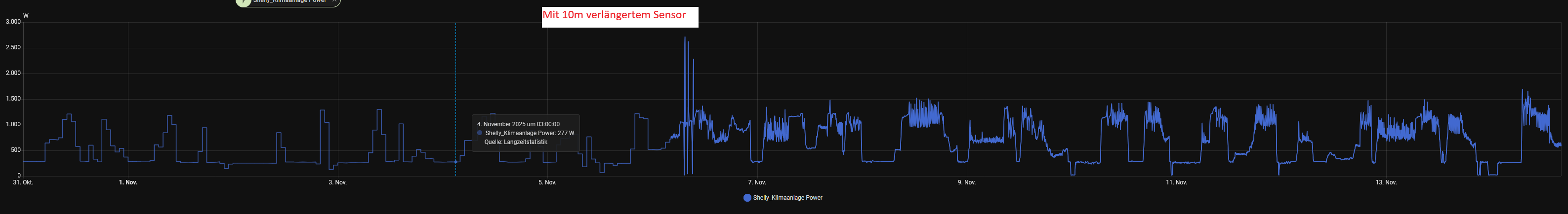 Das sieht ja sehr vielversprechend aus, hast du auch ein Verlauf, wo die Anlage trotz externe Temperatursensor ins takten gekommen ist? Daran könnte man ja sehen, wie die Hysterese mit externen Sensor ist.