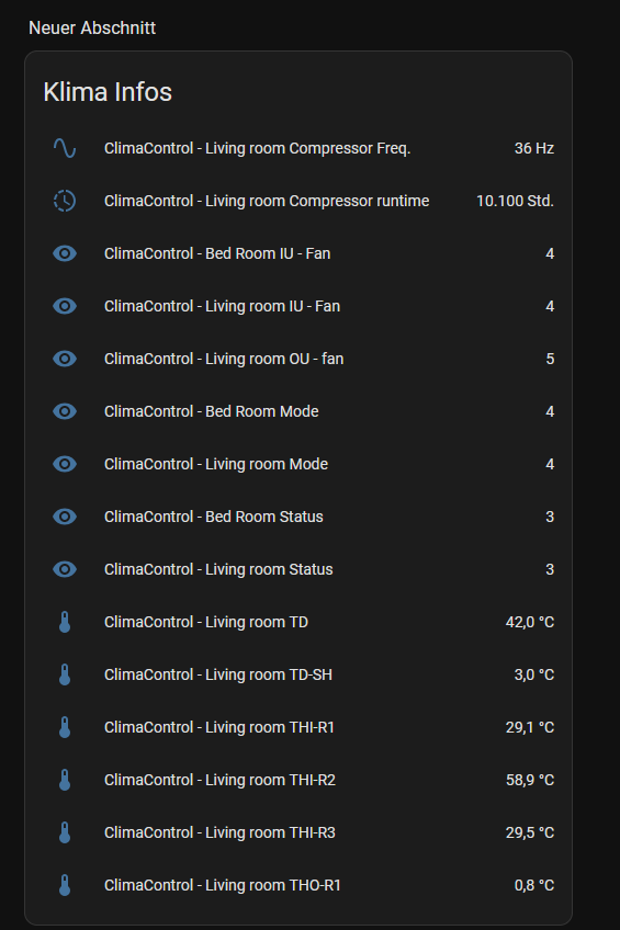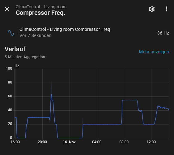 Aber bis jetzt tut es soweit was es soll. Cool ist auch, dass man jetzt die ganzen Infos vom Aussengerät sieht und auch die Kompressorfrequenz (wenn ich das richtig interpretiere),