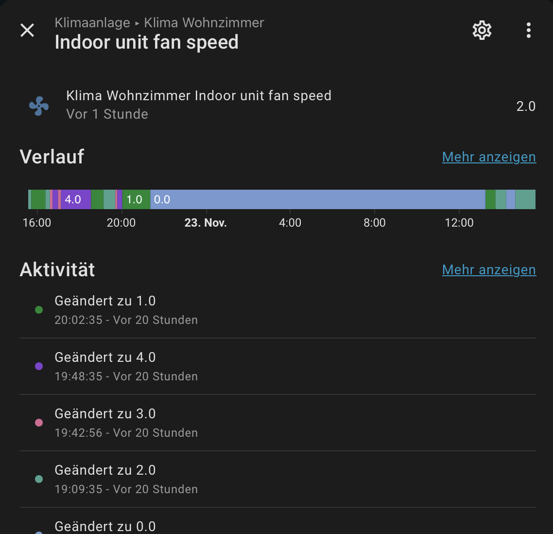 Mit dem MHI-AC-Ctrl-ESPHome Modul (und auch dem ProtoArt-Adapter, vermute ich), ist die aktuelle Lüfterstufe abfragbar, mit dem WF-RAC-Modul nicht.