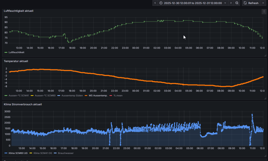 Ich bin in den letzten Tagen auch mal dazu gekommen BT-Temperatursensoren zu verbauen und das Ganze in HA zu visualisieren um den möglichst realen COP auf die schliche zu kommen.
