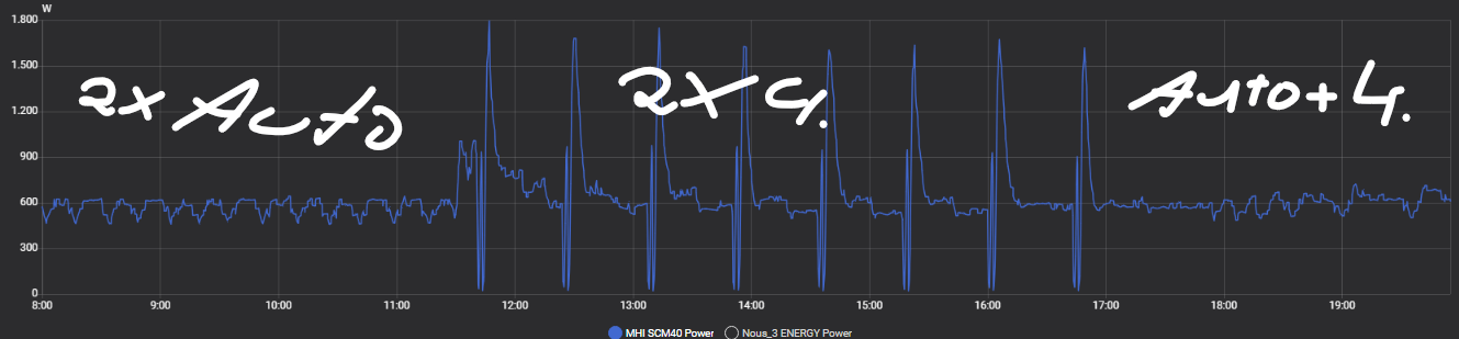 Auf “normal” mit voll-Automatik lief das WZ Gerät super schnell auf Lüfter 2 und brachte gar keine Leistung, verbrannte einfach 400W und die Gasheizung hat bei 18°C übernommen, während das Gerät der Meinung war es wären 24°C.