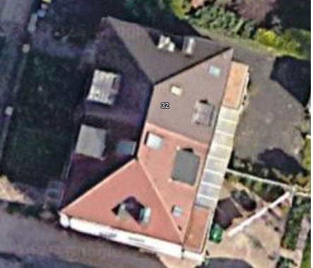 Die Gesamtdachfläche beträgt knapp 100 m², wobei ein Großteil durch die Gauben, Fenster und Schornstein belegt sind. Das Google-Bild ist natürlich alt und vor derRenovierung. Durch die 12cm Aufsparrendämmung wirkt es jetzt etwas aufgeblasen und die Fläche hat sich sicher ein bisschen vergrößert. Die Walmseite hat jetzt eine Länge von ca. 12 m, Dachneigung im Bereich von 30 Grad. Aus optimschen Gründen will ich auch keine Module auf die Gauben bauen (aufgeständert).