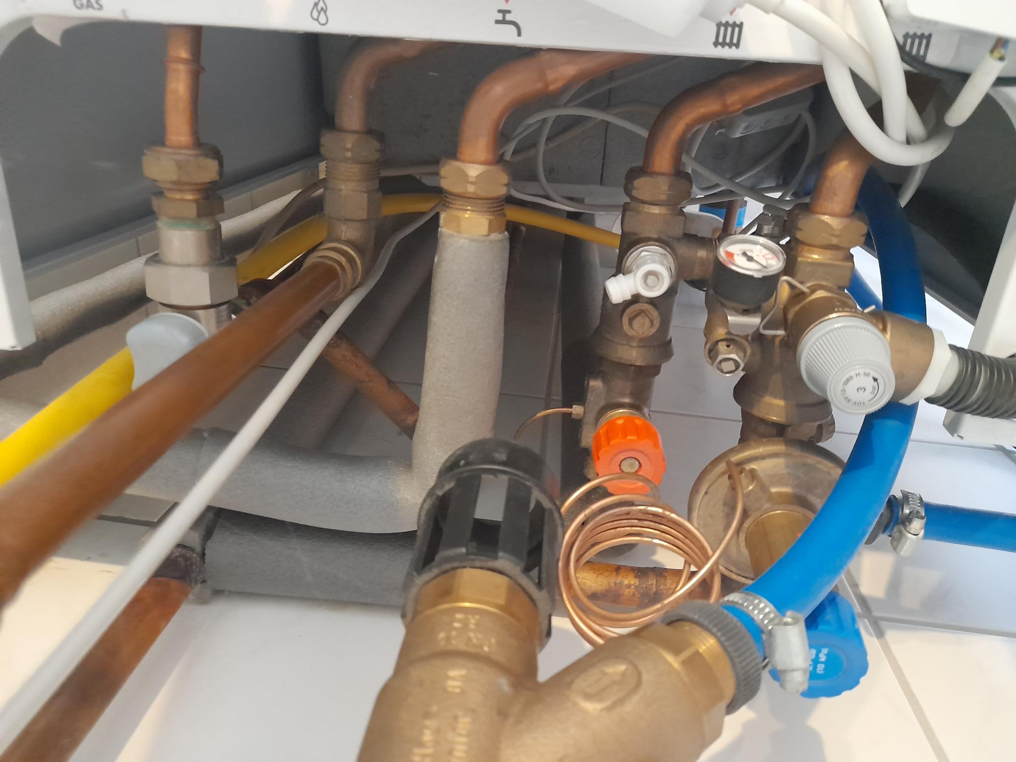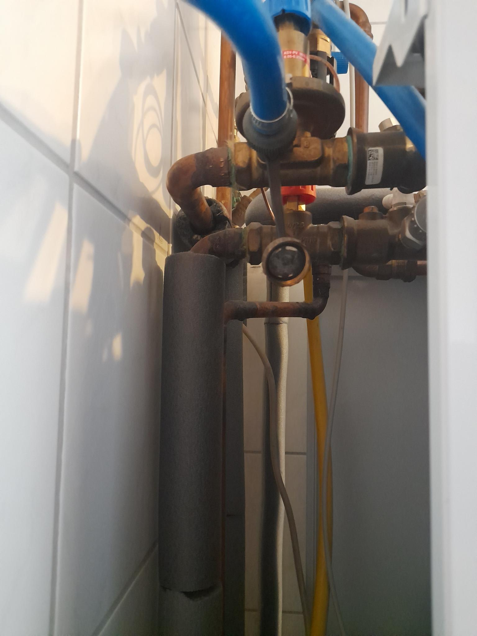 Dort komme ich mit neuen Leitungen leider sehr schlecht hin: die Gastherme inkl. Warmwasser-Speicher befindet sich aktuell im Bad im OG in der Hausmitte; kein direkter Zugang nach draußen, jedenfalls kein einfach realisierbarer.