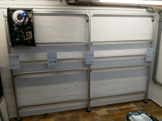 hab 3 MP2 aufgehangen an Rahmenhölzern (50x70) um diverse Verkabelungen besser durch Platzmangel durchführen zu können. Die Rahmenhölzer sind mit 8x120 Sechskantholzschrauben in der Wand verschraubt und die MP2 mit den beiliegenden 5er Holzschrauben auf dem Rahmenholz. Nun im höheren Leistungsbereich bin ich doch vom Geräusch und Schwingungspegel überrascht der sich vom Keller bis zum 1OG durchs Haus überträgt.