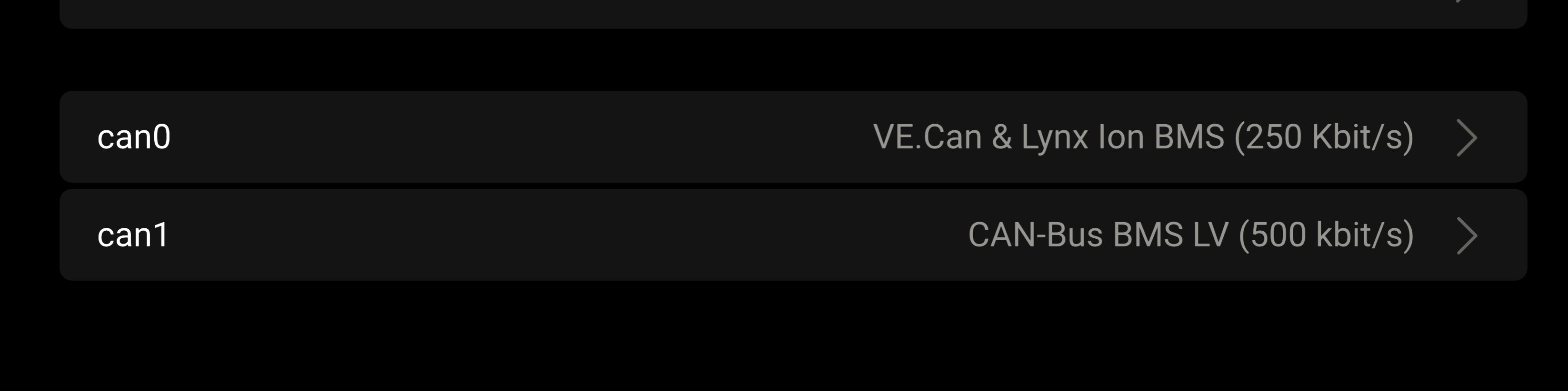 Es sind zwei VE.can Anschlüsse vorhanden. Soweit ich es recherchiert habe, können diese entweder als VE.can mit anderen Victron Geräten genutzt werden oder als CAN-Bus für das BMS.