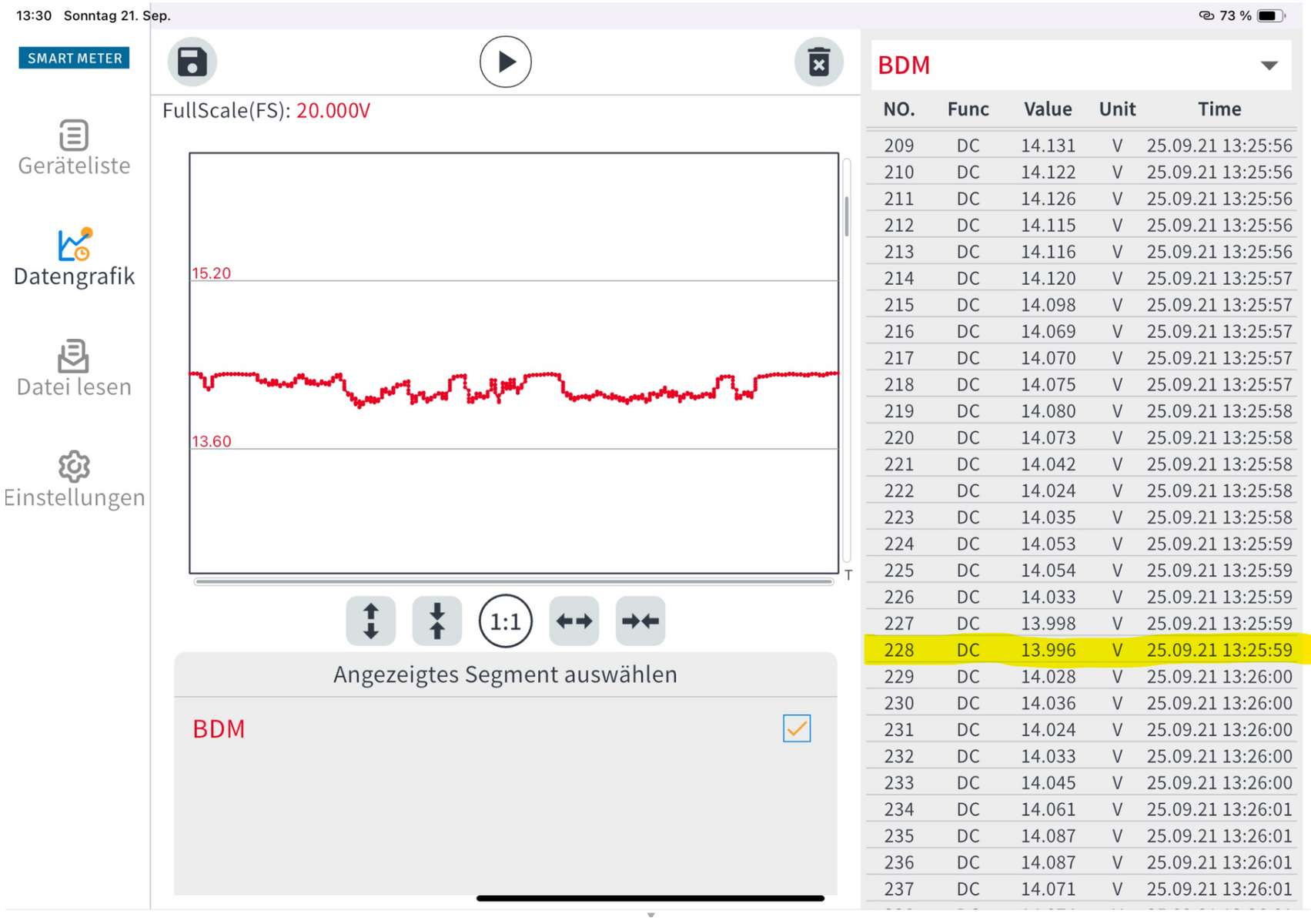 Dadurch konnte ich mehrere Jahre lang ständig bei der Fahrt Spannung und Strom beobachten.