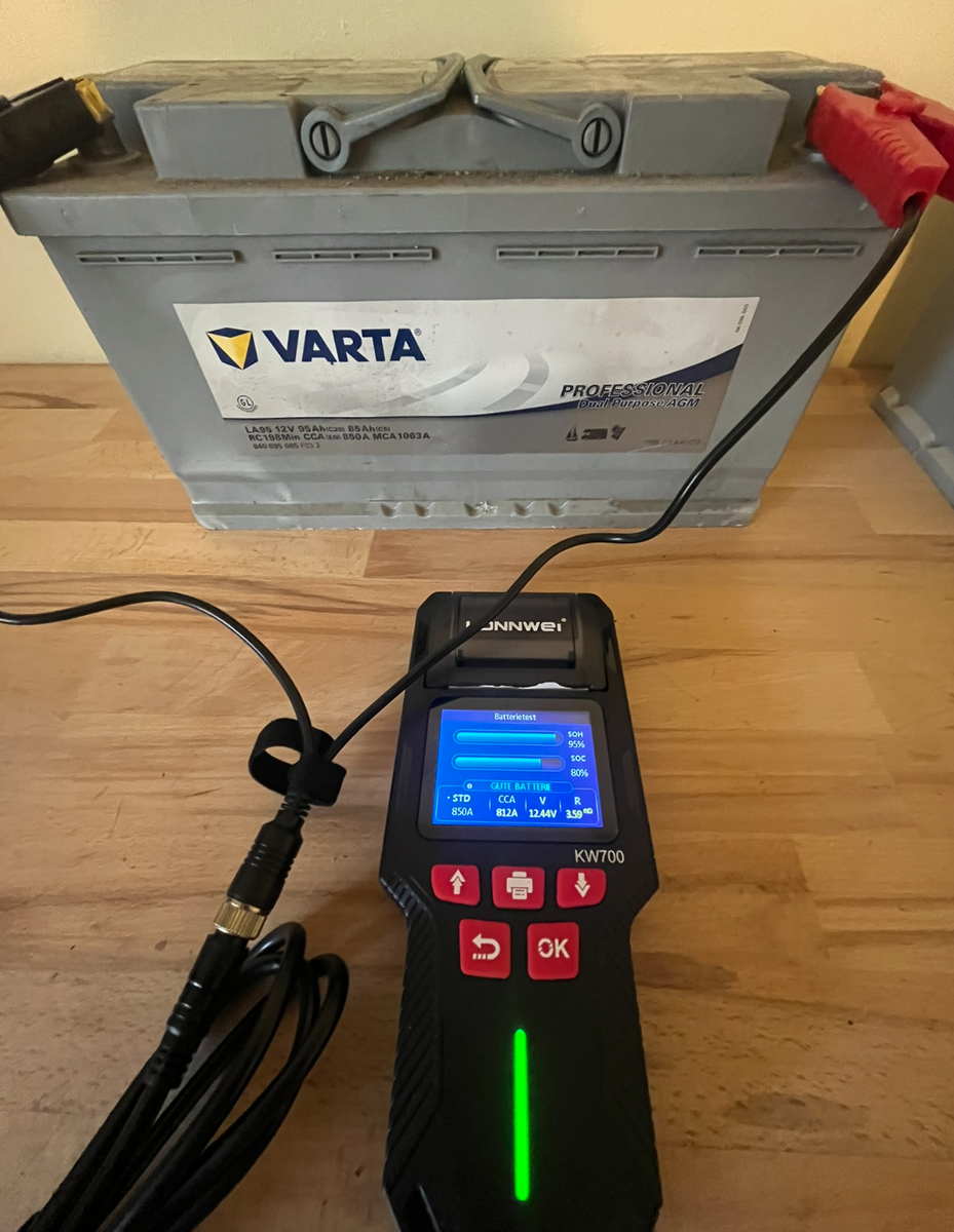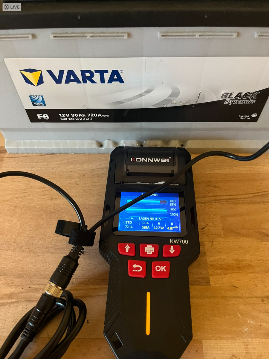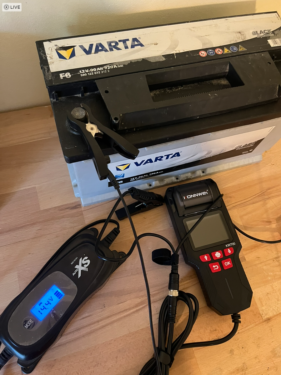 Dann zu Hause am Sa die AGM abgeklemmt ohne Motorstart (oder Nachladung) und das Auto mit der Winston gestartet und vor´s Haus gestellt.