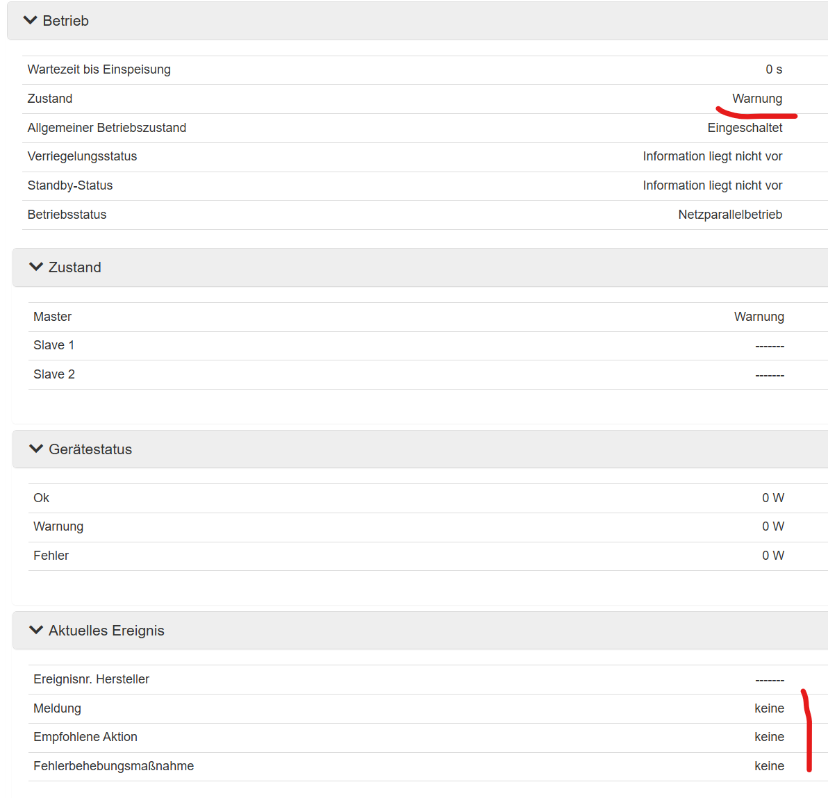Im Reiter “Ereignisse”, noch bei den Momentanwerten bekomme ich einen Fehler angezeigt.