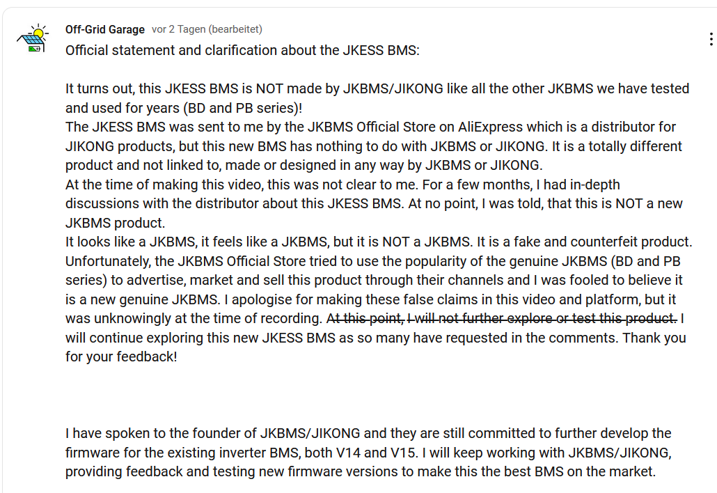 Ich habe zwei Akkus mit dem 200A BMS. Am Master Akku über CAN-Bus am Deye WR, ohne MASSE am Deye verbunden. Am RS485-2 Port dann vom Masterakku zu Slaveakku. An die Buchse neben CAN-Bus habe ich an beiden Akkus eine RS485 zu Homeassistant. Dort lese ich per Modbus alle Daten vom BMS aus.