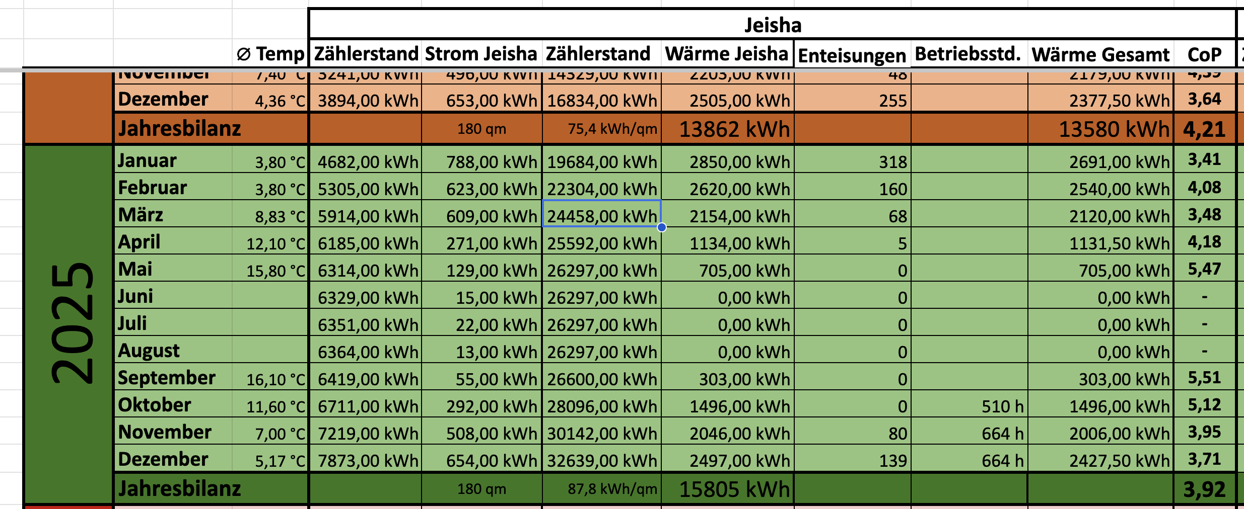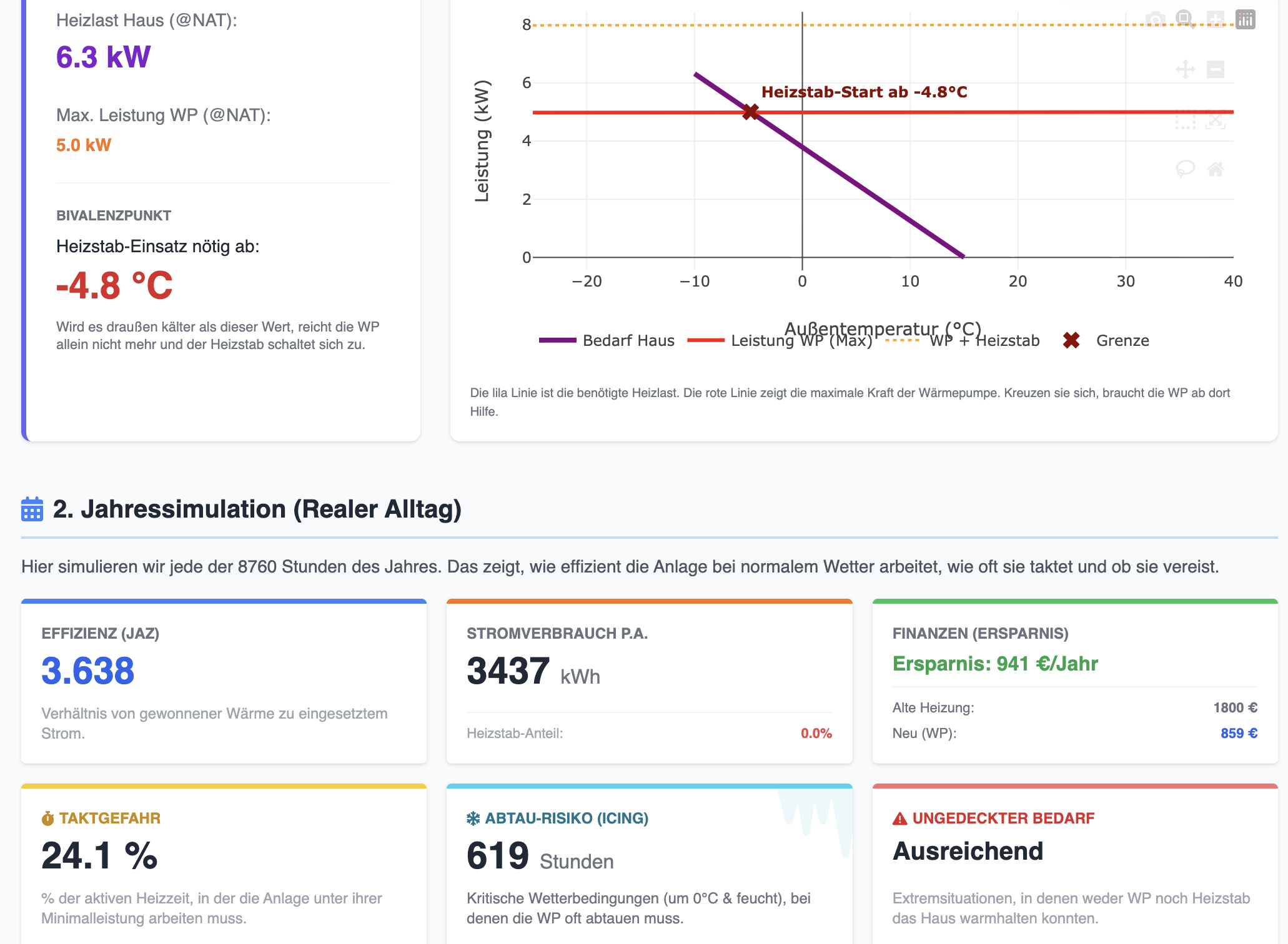 Meine Jaz ist im “schlechten“ Jahr 2025 mit 3,92 besser als die Berechnung des Tools. In 2024 habe ich es sogar auf 4,2 geschafft. Den Heizstab habe ich bisher noch nie benutzt. Selbst bei -8 Grad nicht. Dann kommt das gute Teil aber schon an seine Grenzen