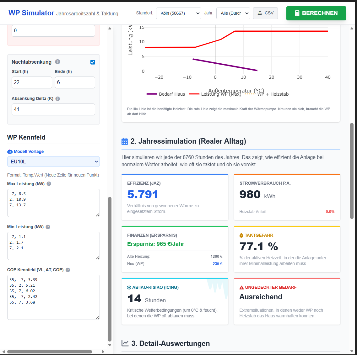 Kann man das Tool nutzen, um die Dimensionierung einer Wärmepumpe zu planen/prüfen?