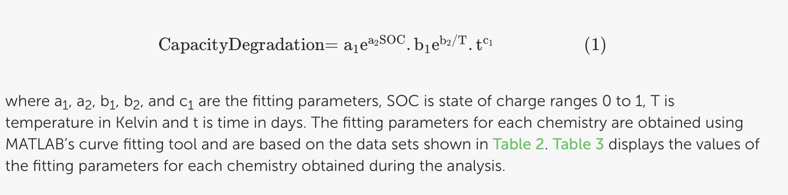 Degradation(LFP) = 0,00157e^(1,317SOC) * 142300* e^(-3492/T) * t^0,48