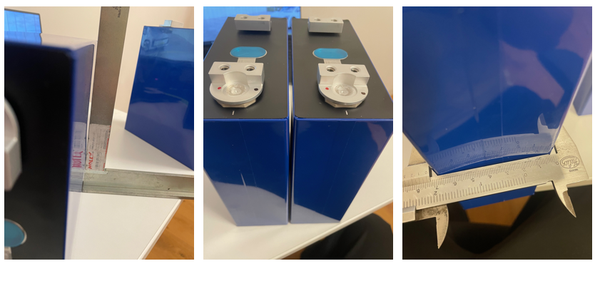 ich bin momentan am Bau eines 16s Akkupacks und gestern sind meine Zellen von NKON (EVE LF280K, A-grade) geliefert worden. Der erste Eindruck war sehr gut. Die Zellen sind laut QR Code gerade mal 3 Monate alt, Ventile sehen gut aus, Spannungen liegen alle zwischen 3,299 und 3,300 V und man findet keinerlei optische Mängel. IR und Kapazitätsmessung folgt noch. Beim Zusammenstellen der Zellen ist mir dann aber aufgefallen, das die Zellen eine "Welle" im Randbereich haben. Würde ich die Zellen parallel schalten, trifft somit Welle auf Welle und entsprechend groß wäre der Abstand zwischen 2 Zellen (siehe Bild). Wenn ich also die Zellen wie geplant in Reihe schalte, trifft immer Berg auf Tal und somit sieht das halb so wild aus. Da zudem alle 16 Zellen das gleiche Bild zeigen, tippe ich eher auf eine systematische Ursache in der Fertigung. Nichtsdestotrotz kannte ich das von meinen bisherigen Basteleien bisher nicht (zumindest nicht so stark ausgeprägt). Im Bereich der Welle sind die Zellen übrigens auch 74mm dick und damit out-of-spec.