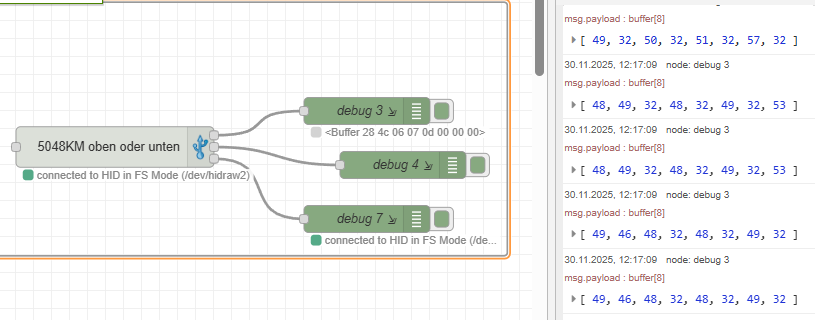 Ich kann diese auch auf hidraw0 und hidraw1 umstellen. Das funktioniert auch als Verbindung.