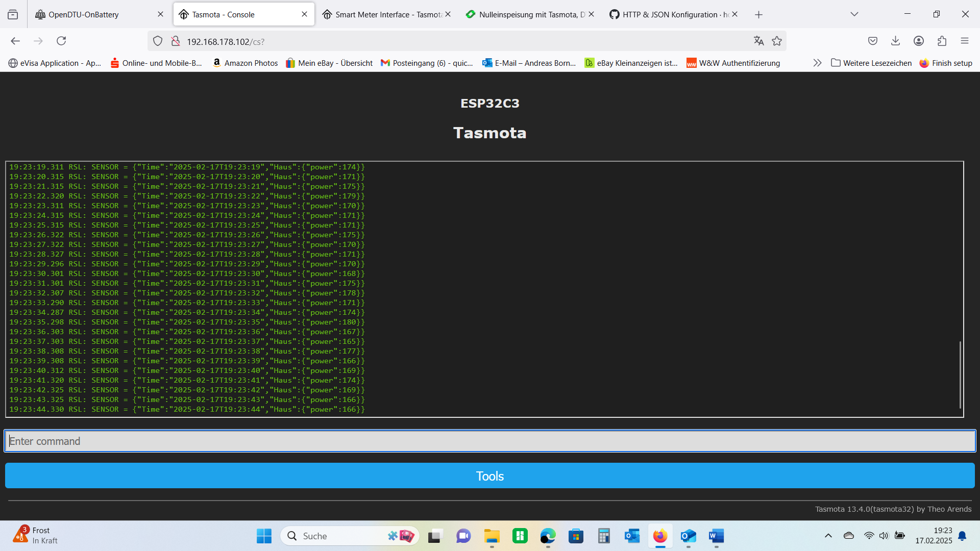 Alle Daten werden auf dem Tasmota interface angezeigt.
