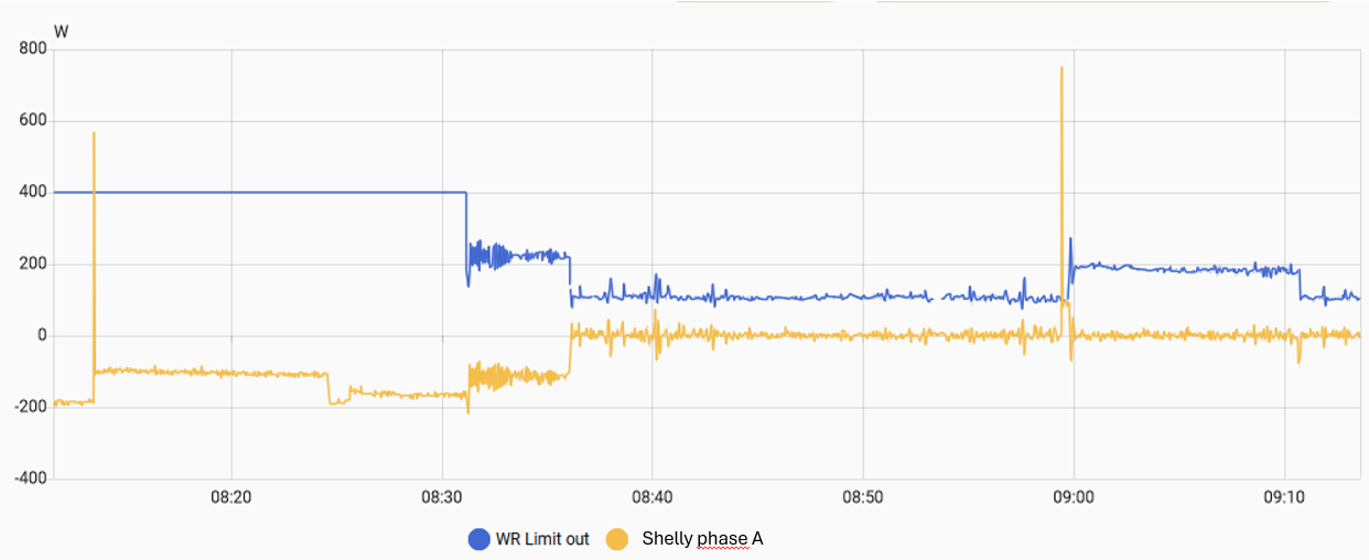 An und für sich funktioniert die Steuerung mit dem Shelly, aber wenn der Akku voll ist und die Sonne scheint werden 800W eingespeist, unabhängig von meinem Verbrauch. Ich möchte aber nichts einspeisen! Was mache ich falsch was muss ich ändern? Oder ist das mit meiner Konfiguration nicht möglich?