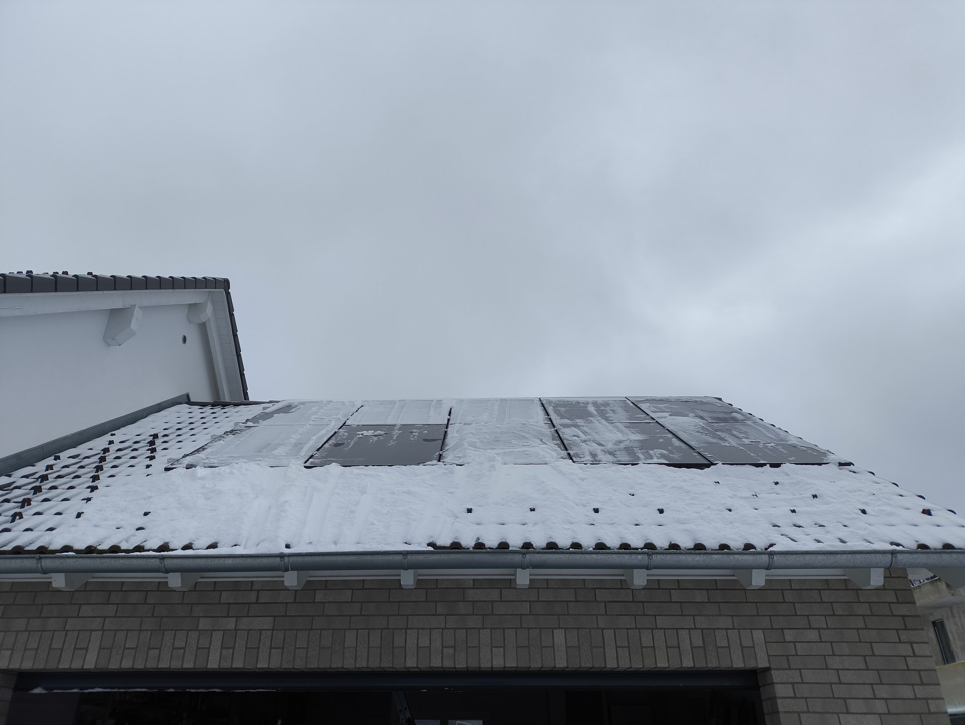 Wenn ein Modul zu ist können die Bypassdioden das noch abfangen aber bei allen kommt halt nichts runter. Hier bei mir im tiefen Süden ist es für mich eine Pflicht aufgabe auf meiner Südanlage vom Garagen Dach den Schnee zuentfernen weil meist nach dem Schneefall die Sonne kommt.