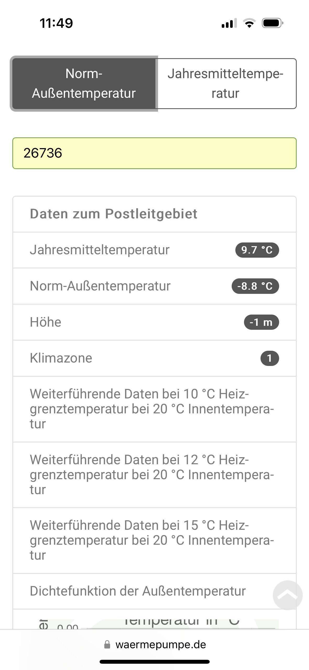 Laut Klimakarte sind bei mir diese Daten: